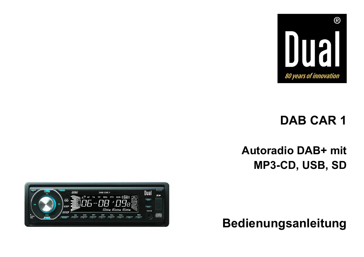 Laden Sie die Anleitung für Ihr DAB-Radioempfänger kostenlos im PDF-Format! Finden Sie Ihr Handbuch DAB CAR 1 - DUAL und nehmen Sie Ihr elektronisches Gerät wieder in die Hand. Auf dieser Seite sind alle Dokumente veröffentlicht, die für die Verwendung Ihres Geräts notwendig sind. DAB CAR 1 von der Marke DUAL.