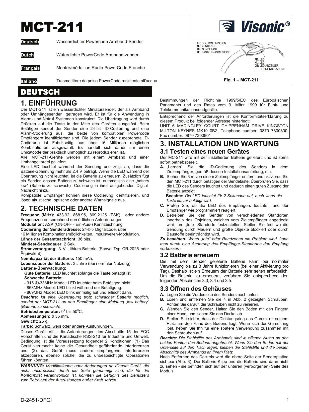 BEDIENUNGSANLEITUNG MCT-211 VISONIC