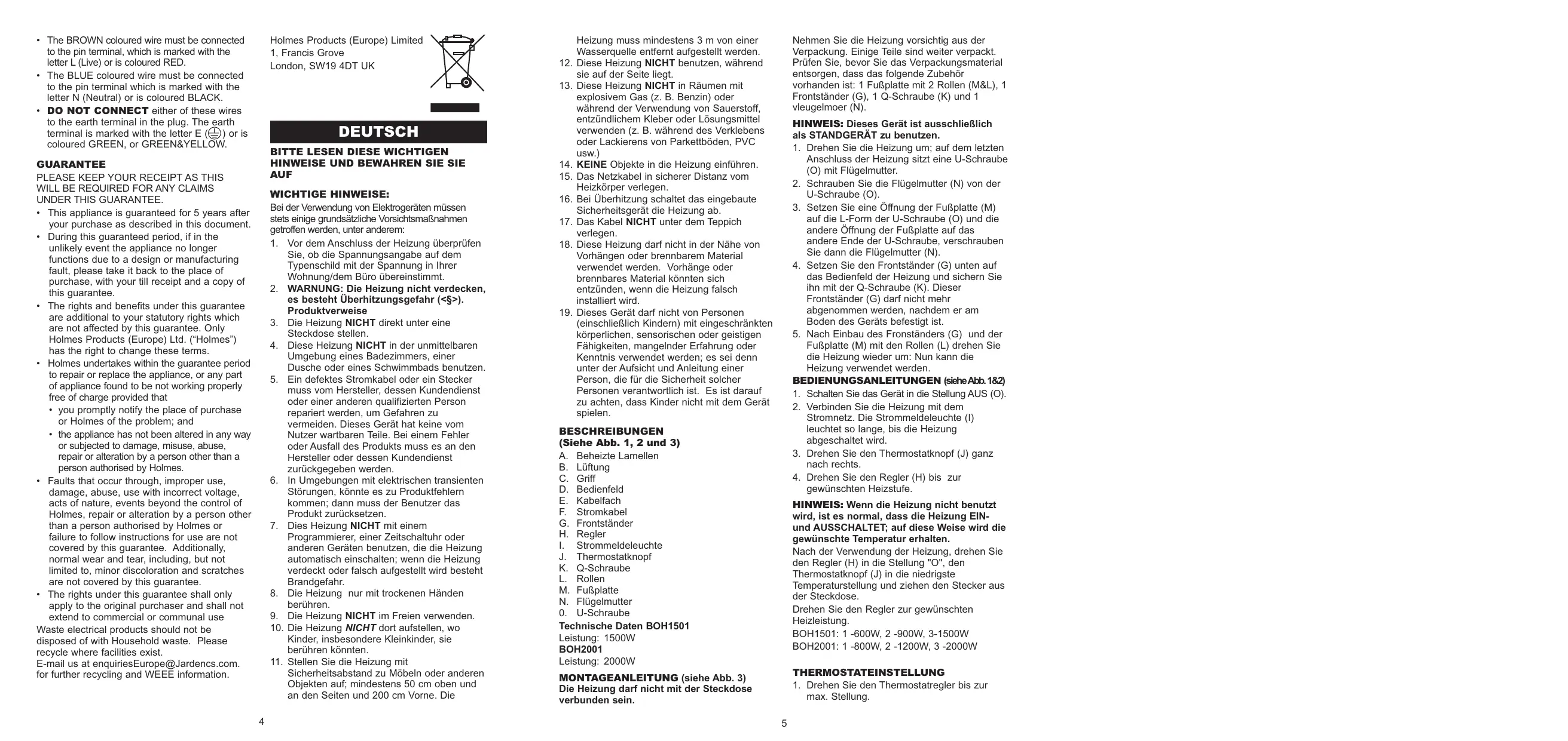 + Die Rechte und Vorteile im Rahmen dieser Garantie gelten unbeschadet Ihrer gesetzlichen Rechte, die durch diese Garantie nicht berührt werden. Diese Bedingungen kônnen ausschlieflich von Holmes Products (Europe) Ltd. (“Holmes”) geändert werden