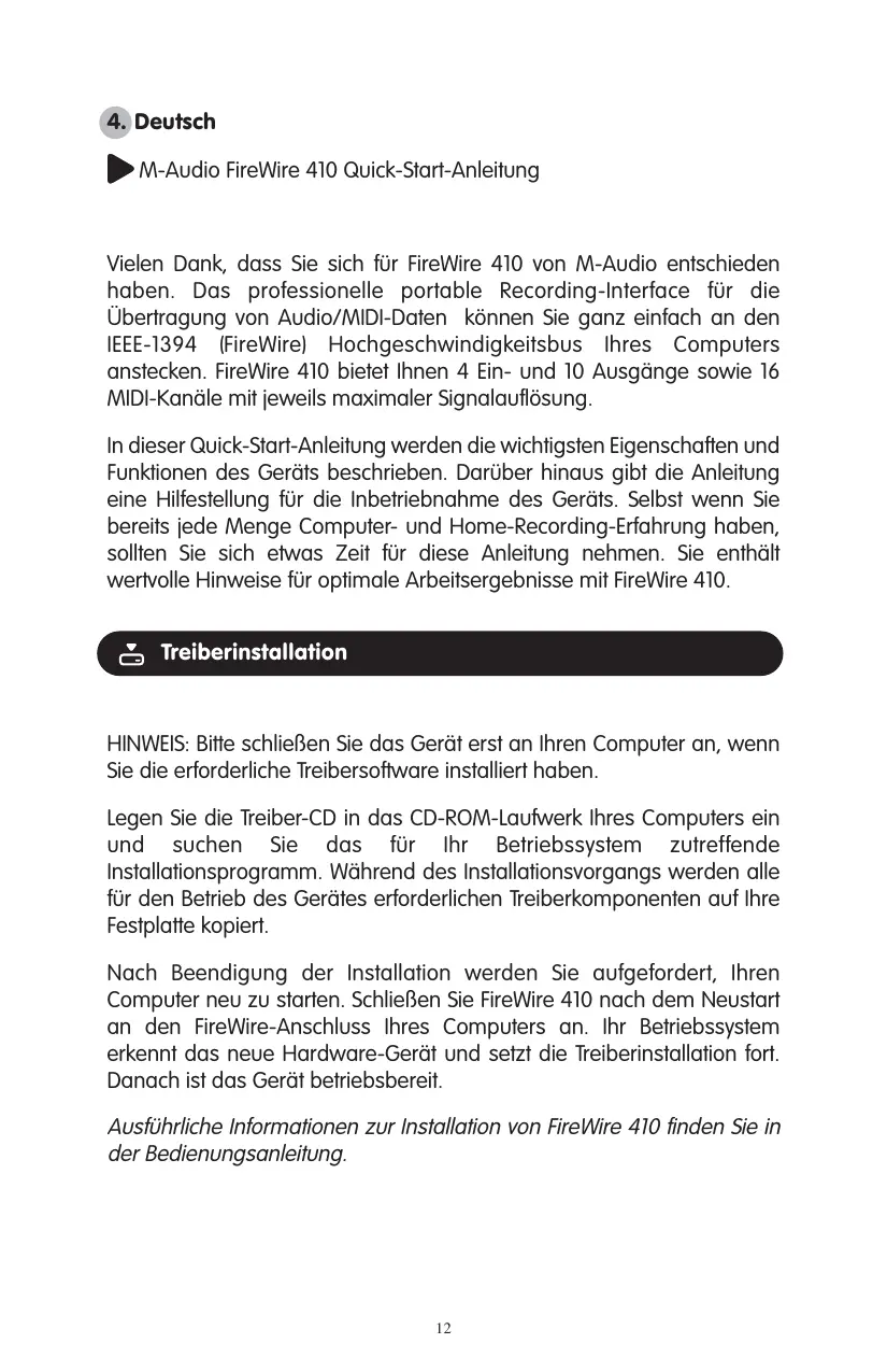 4. Deutsch M-Audio FireWire 410 Quick-Start-Anleitung