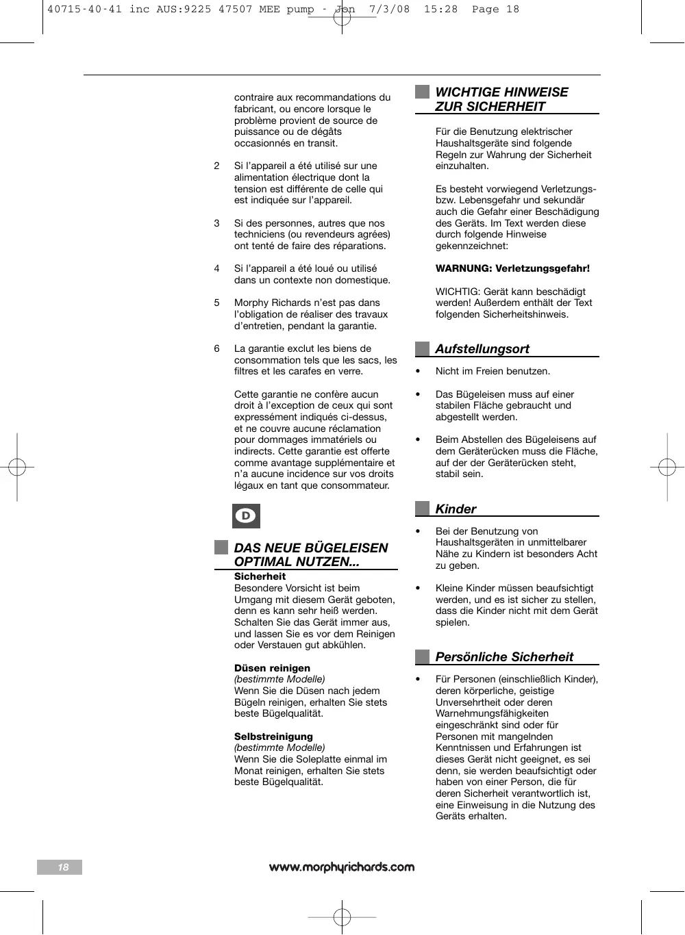Morphy Richards kann nicht dafür haftbar gemacht werden, Reparaturarbeiten im Rahmen der Garantieleistung auszuführen.