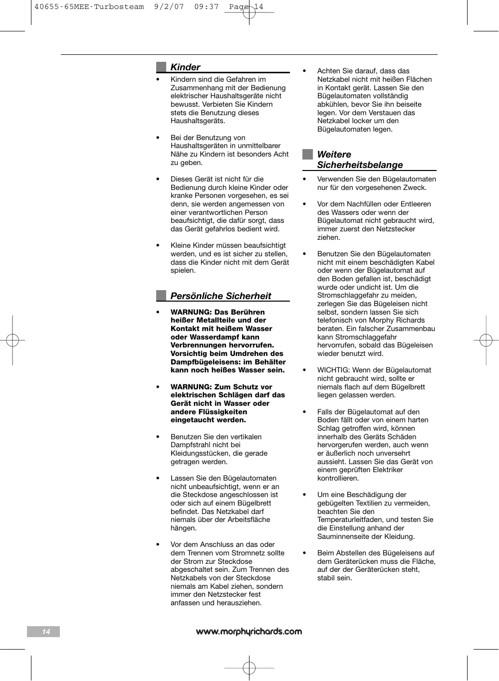 Finden Sie kostenlos die Bedienungsanleitung des Geräts TURBOSTEAM 40659 MORPHY RICHARDS als PDF.