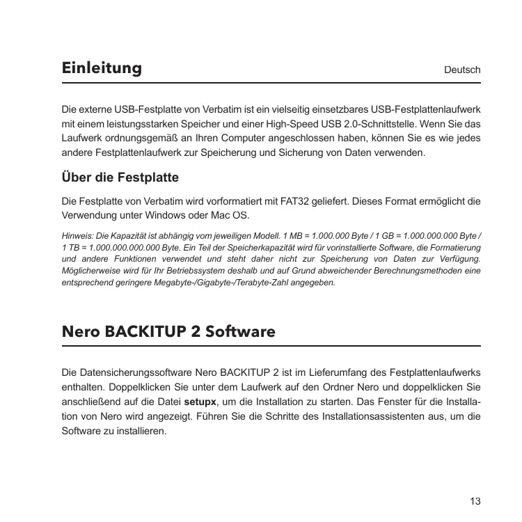 BEDIENUNGSANLEITUNG EXTERNAL HARD DRIVE USB 2.0 VERBATIM