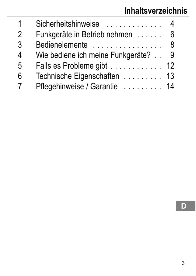 - Wie bediene ich meine Funkgeräte? p. 9