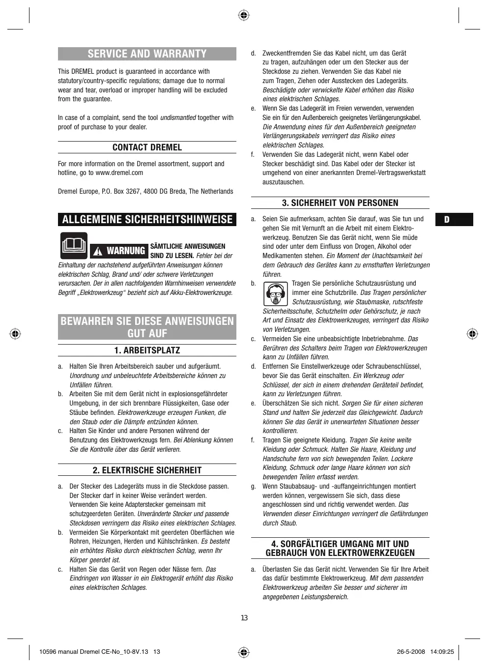 BEDIENUNGSANLEITUNG 10.8V LITHIUM-ION DREMEL