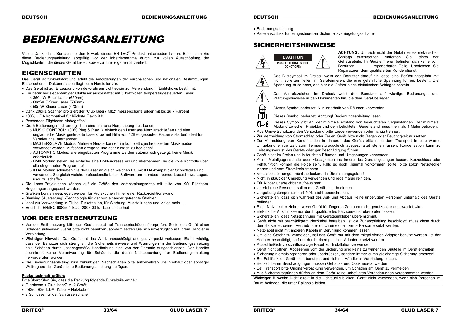 Finden Sie kostenlos die Bedienungsanleitung des Geräts CLUB LASER 7 JBSYSTEMS als PDF.