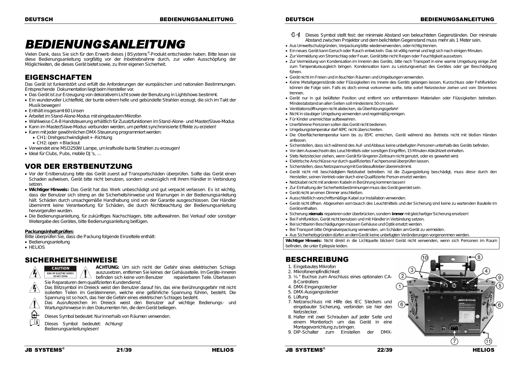BEDIENUNGSANLEITUNG HELIOS JBSYSTEMS