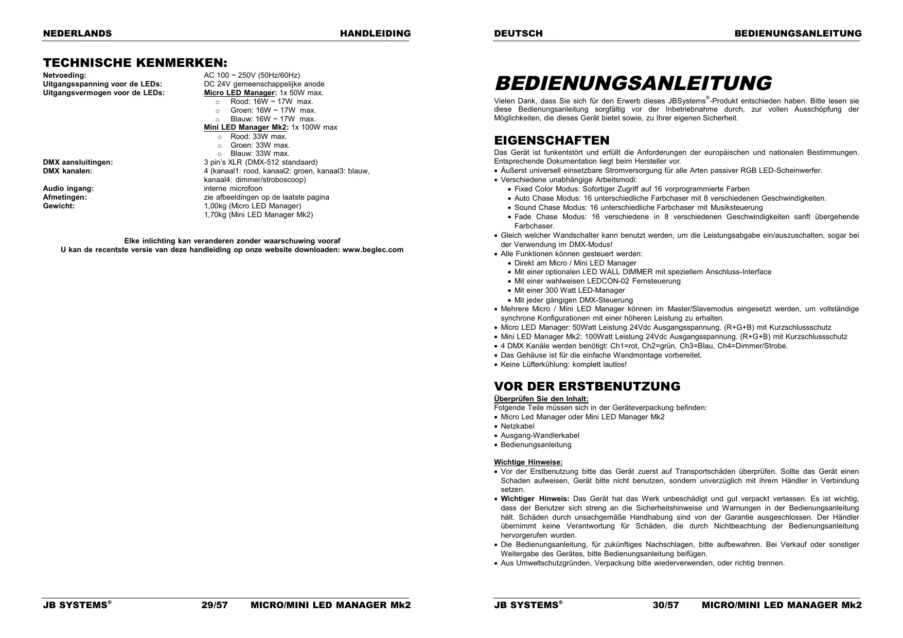 BEDIENUNGSANLEITUNG MINI LED MANAGER MK2 JBSYSTEMS