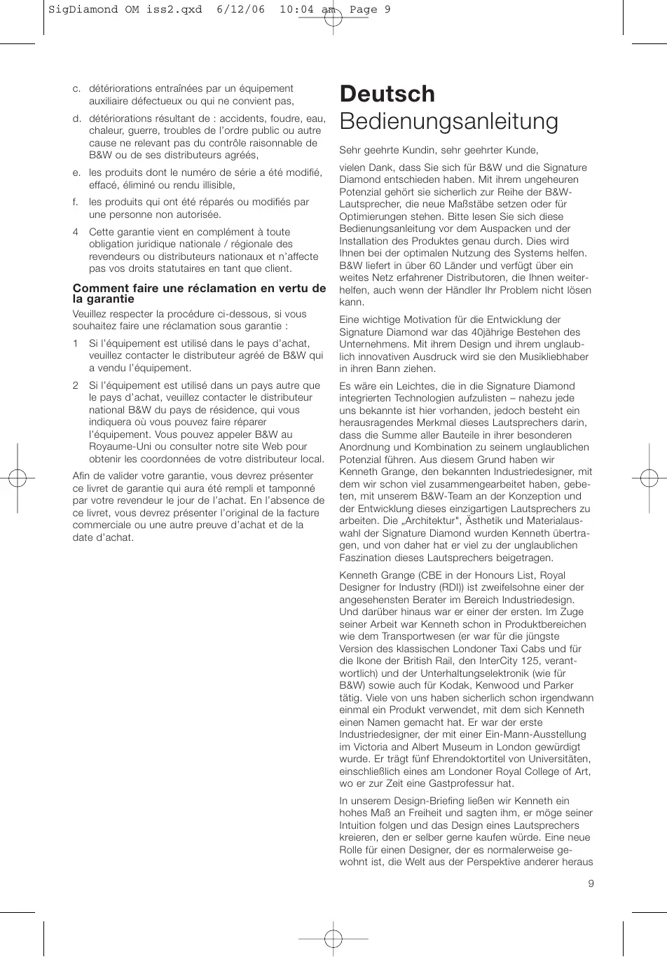 B&W SIGNATURE DIAMOND - Lautsprecher B&W - Kostenlose Bedienungsanleitung