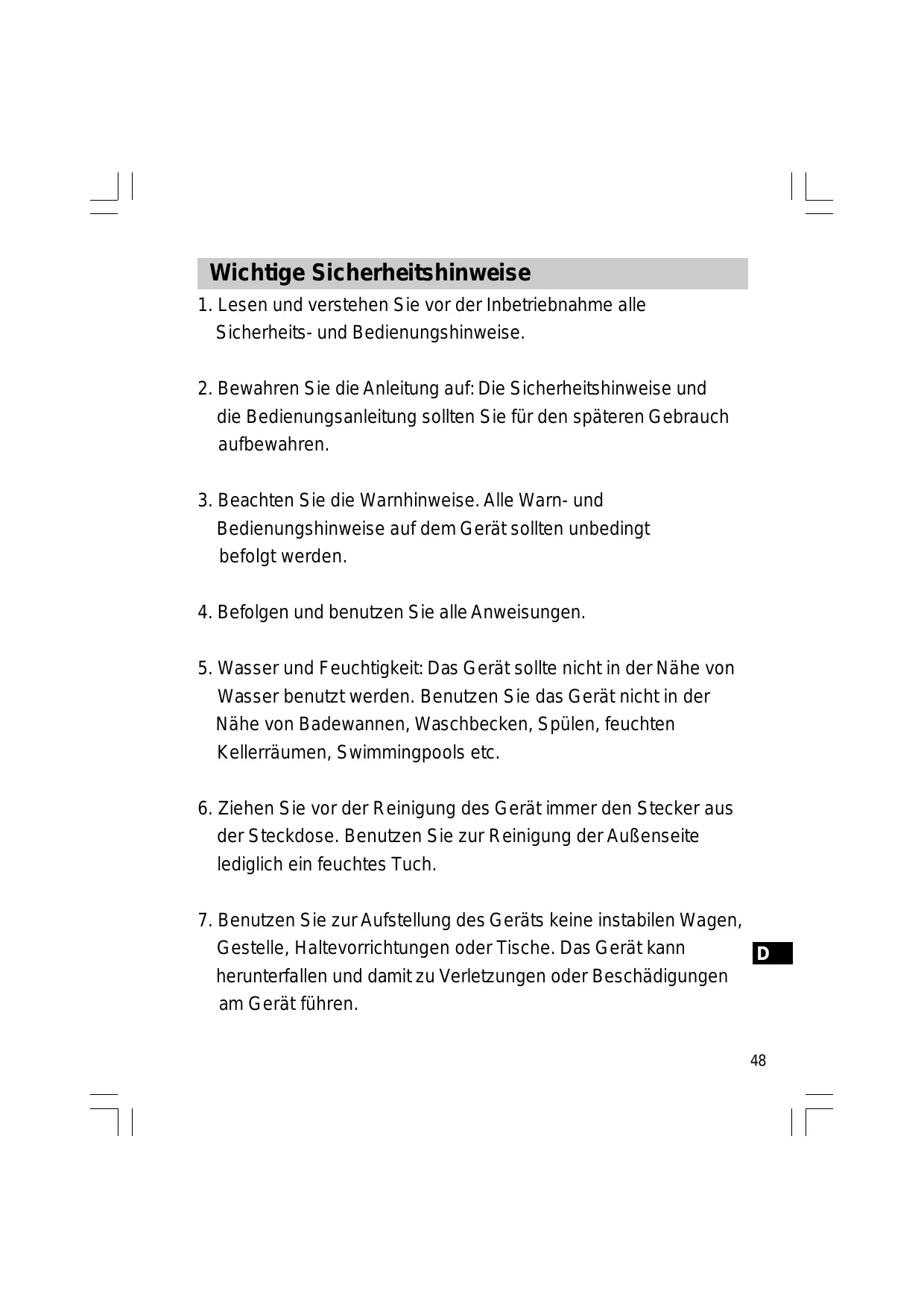 5. Wasser und Feuchtigkeit: Das Gerät sollte nicht in der Nähe von