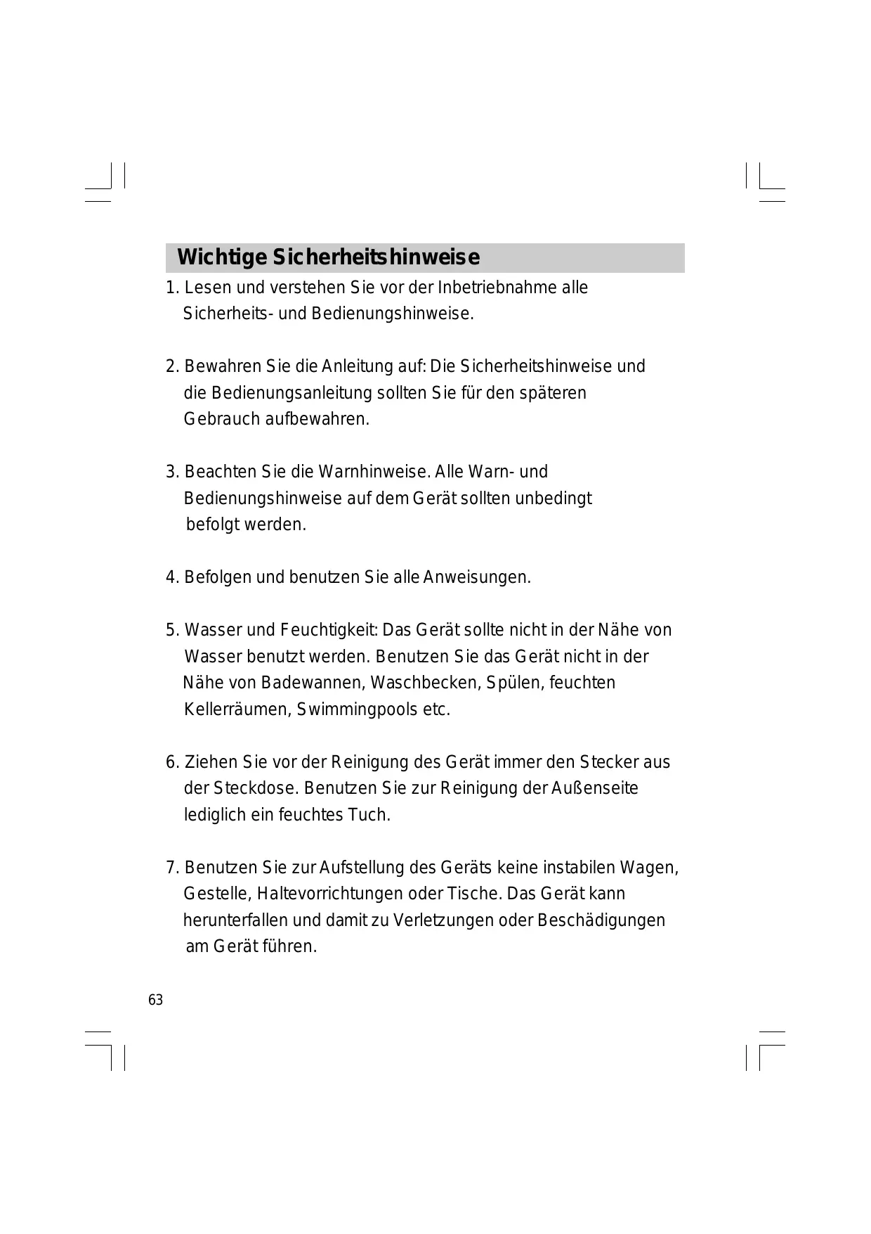 5. Wasser und Feuchtigkeit: Das Gerät sollte nicht in der Nähe von