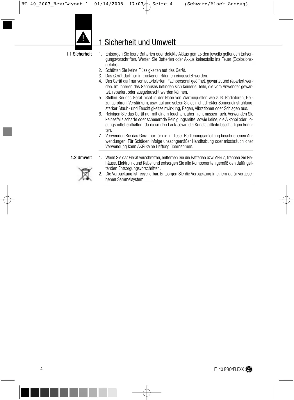Finden Sie kostenlos die Bedienungsanleitung des Geräts HT 40 PRO AKG als PDF.