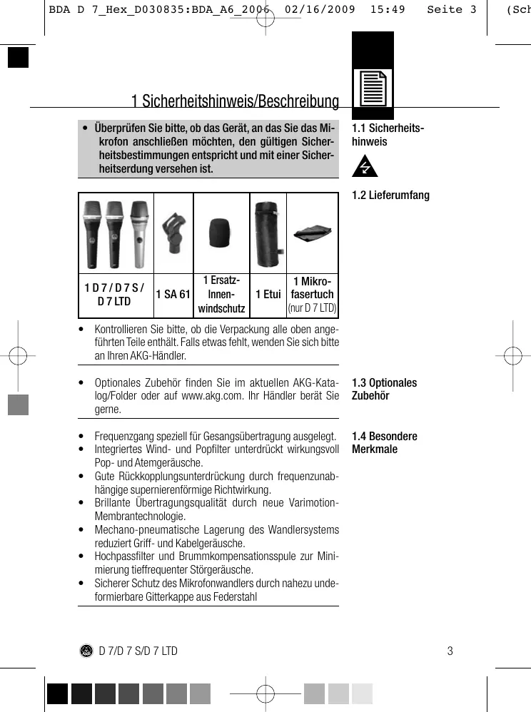 Finden Sie kostenlos die Bedienungsanleitung des Geräts D7 LTD AKG als PDF.