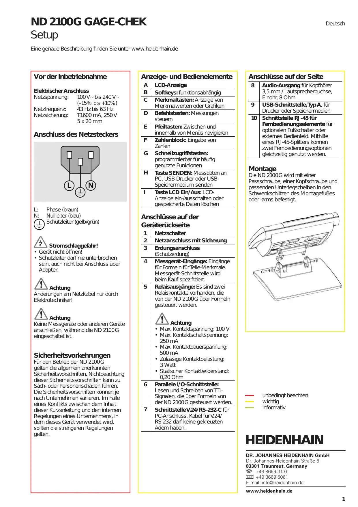 ND 2100G - Industrielles Messgerät HEIDENHAIN - Kostenlose Bedienungsanleitung