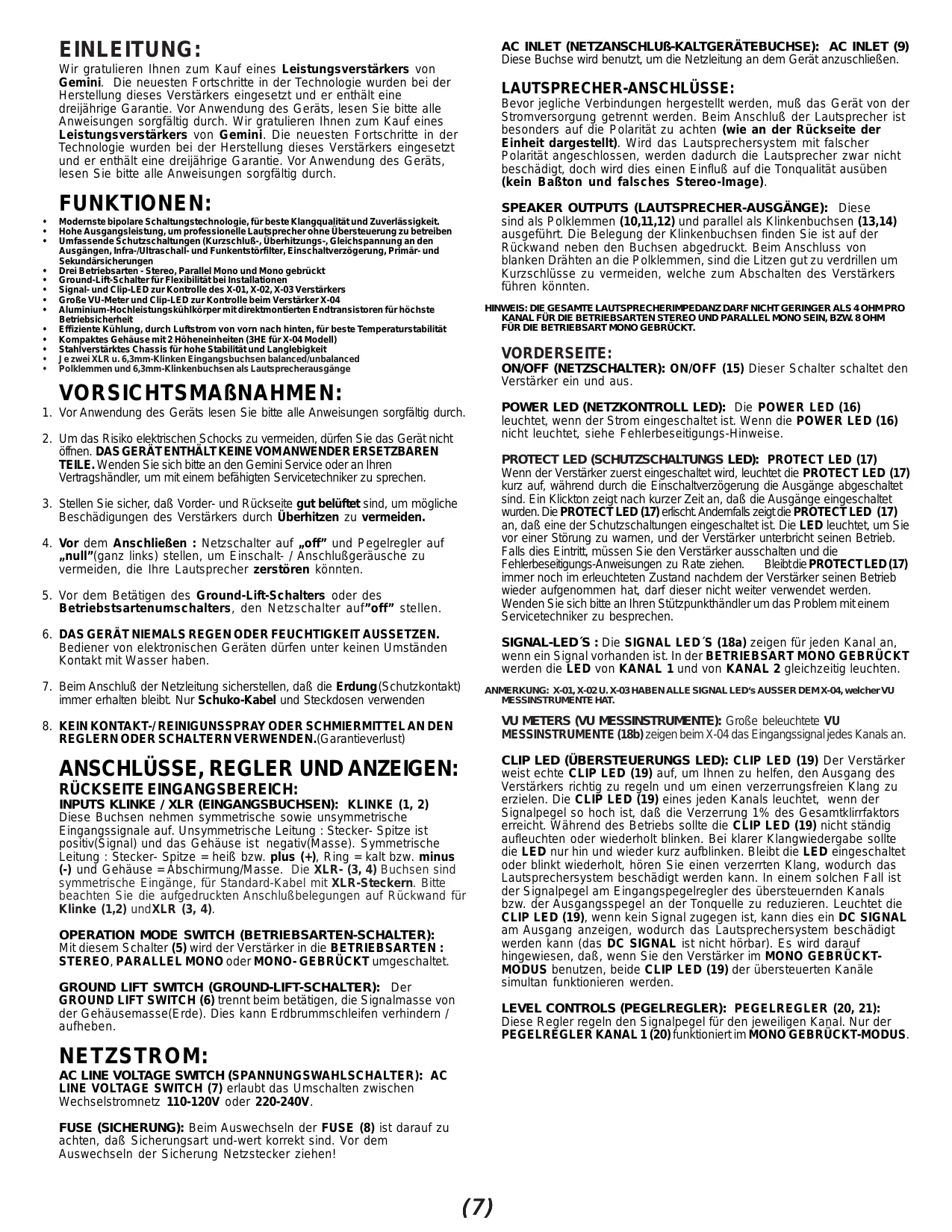 BEDIENUNGSANLEITUNG X-03 GEMINI