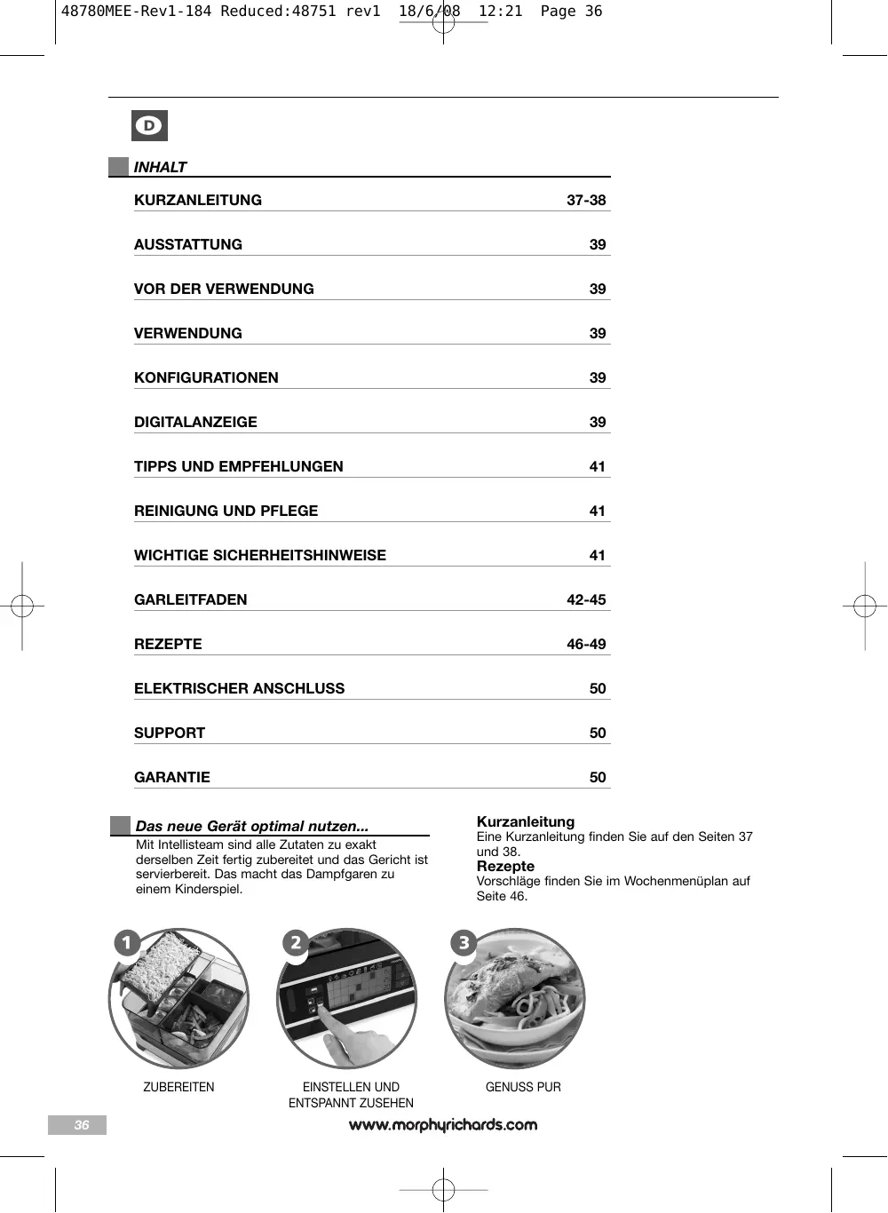 EINSTELLEN UND ENTSPANNT ZUSEHEN Eine Kurzanleitung finden Sie auf den Seiten 37 und 38. Vorschläge finden Sie im Wochenmenüplan auf Seite 46.