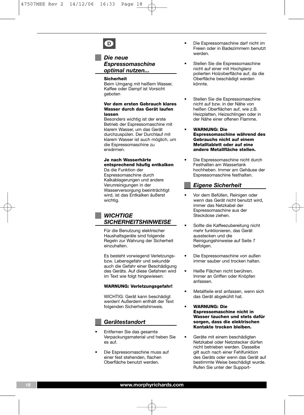 16:33 Page 18 ee I Die neue Espressomaschine 0} al nutzei Sicherheit