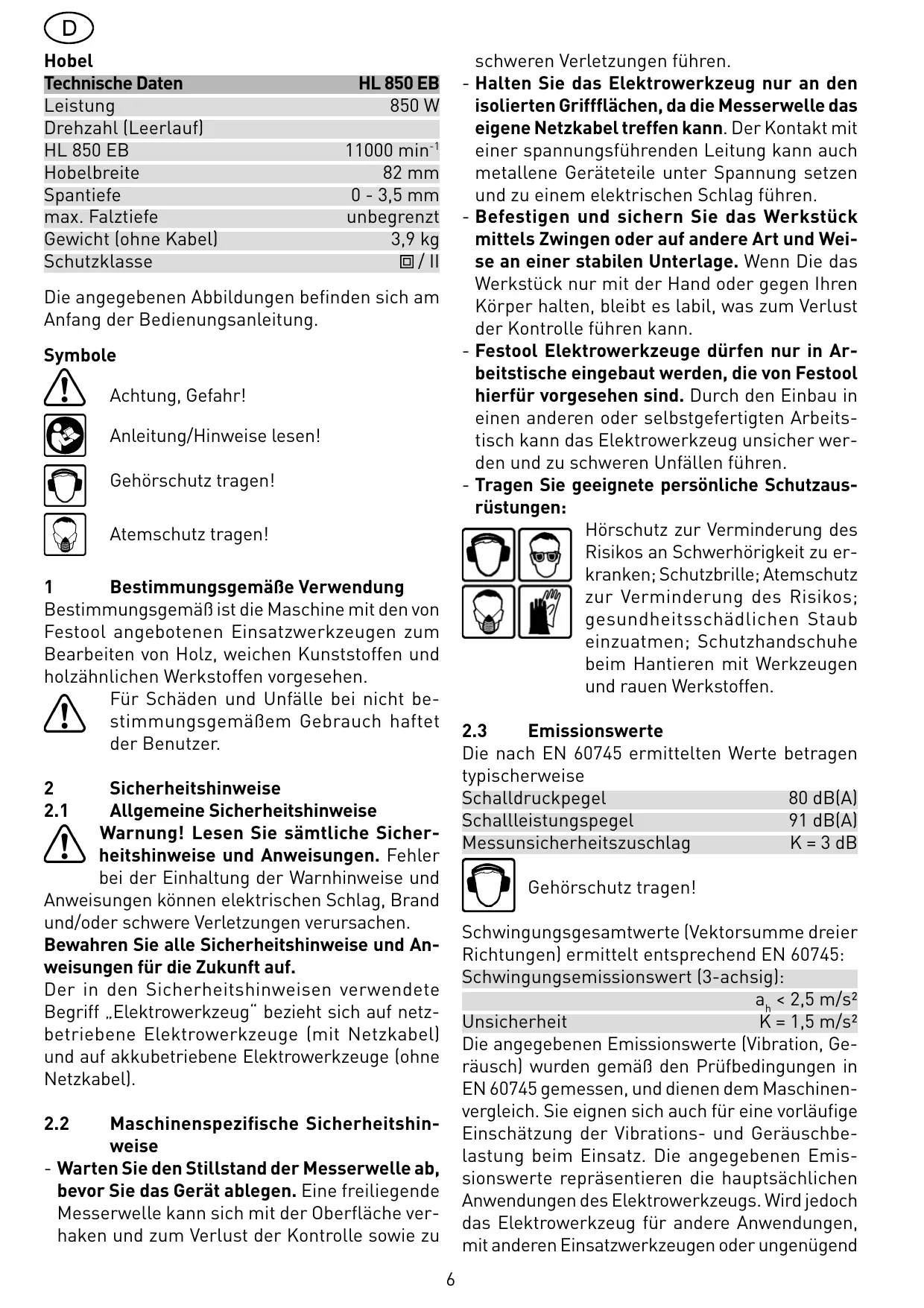 BEDIENUNGSANLEITUNG HL 850 EB FESTOOL