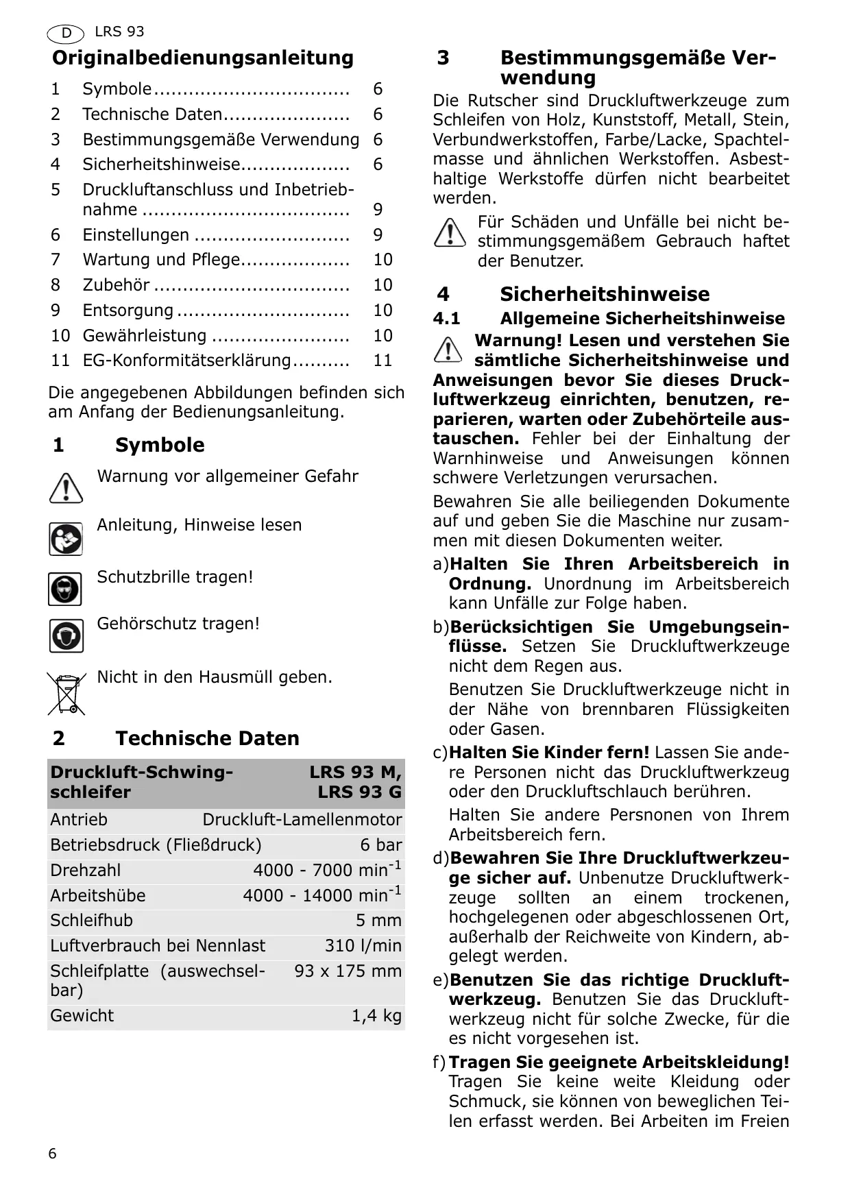 LRS 93 G - Schleifmaschine FESTOOL - Kostenlose Bedienungsanleitung