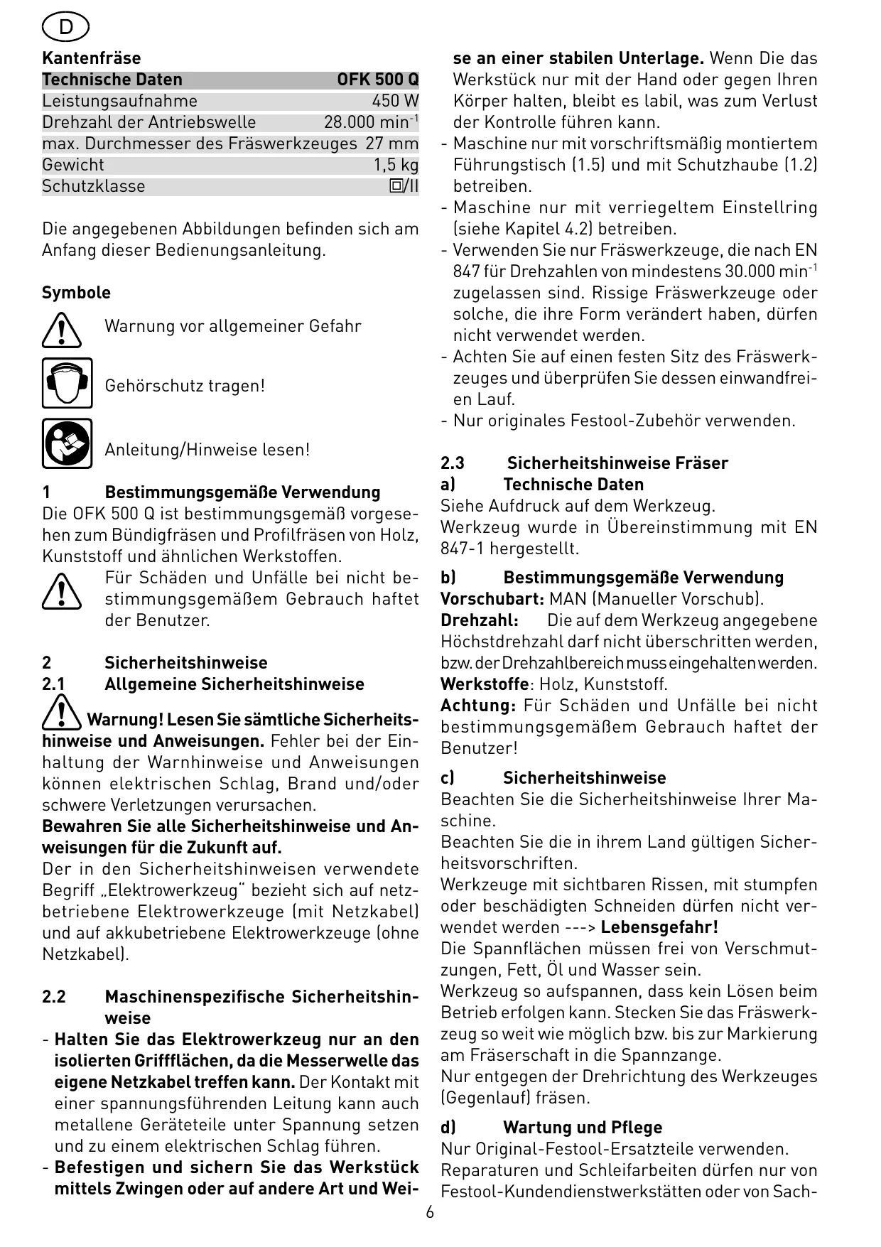 BEDIENUNGSANLEITUNG OFK 500 Q FESTOOL