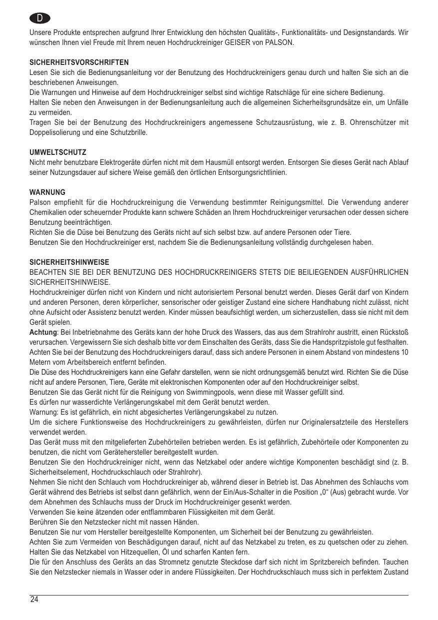 GEISER - Hochdruckreiniger PALSON - Kostenlose Bedienungsanleitung