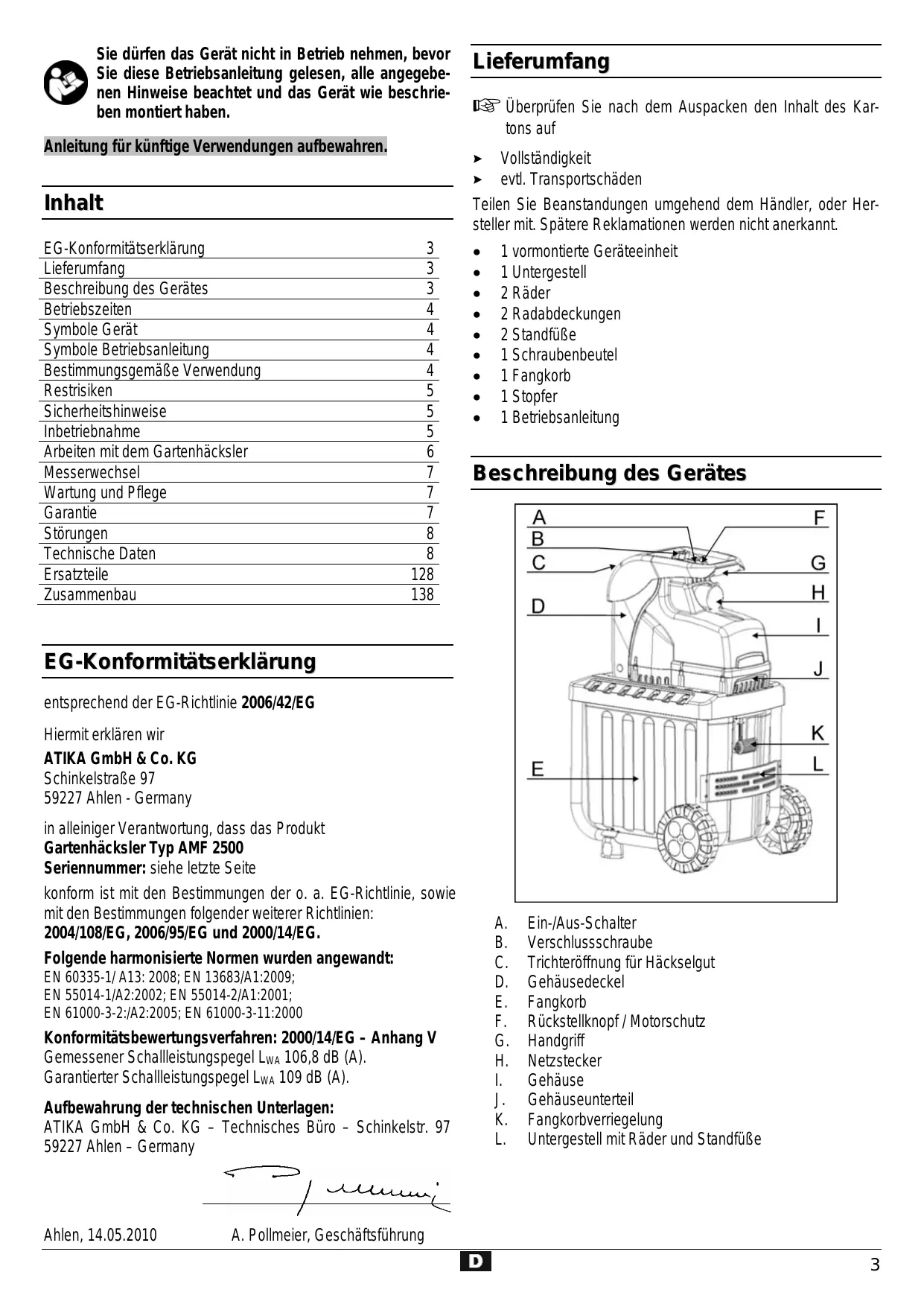 2500 W - Gartenhäcksler ATIKA - Kostenlose Bedienungsanleitung