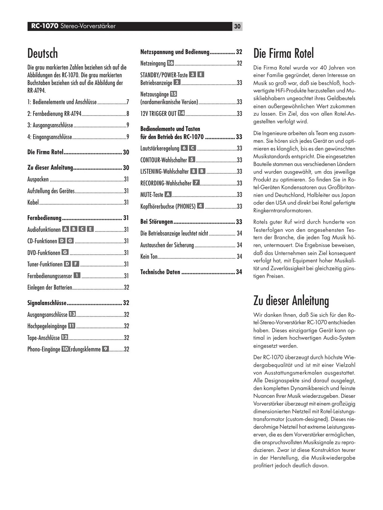 BEDIENUNGSANLEITUNG RC-1070 ROTEL