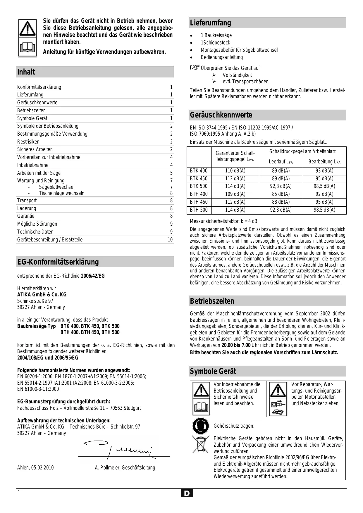 BTK - Elektrosäge ATIKA - Kostenlose Bedienungsanleitung