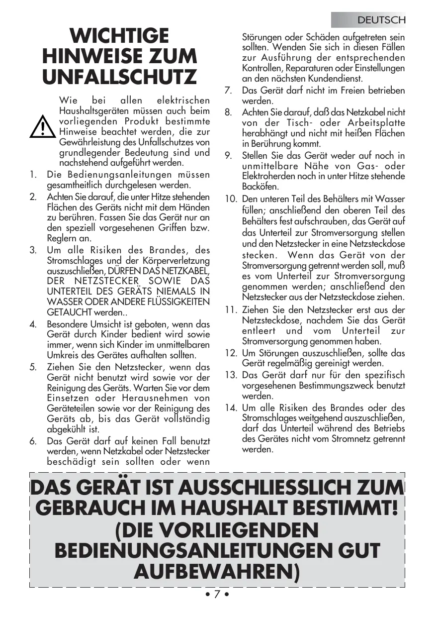 BEDIENUNGSANLEITUNG BONITA GAGGIA