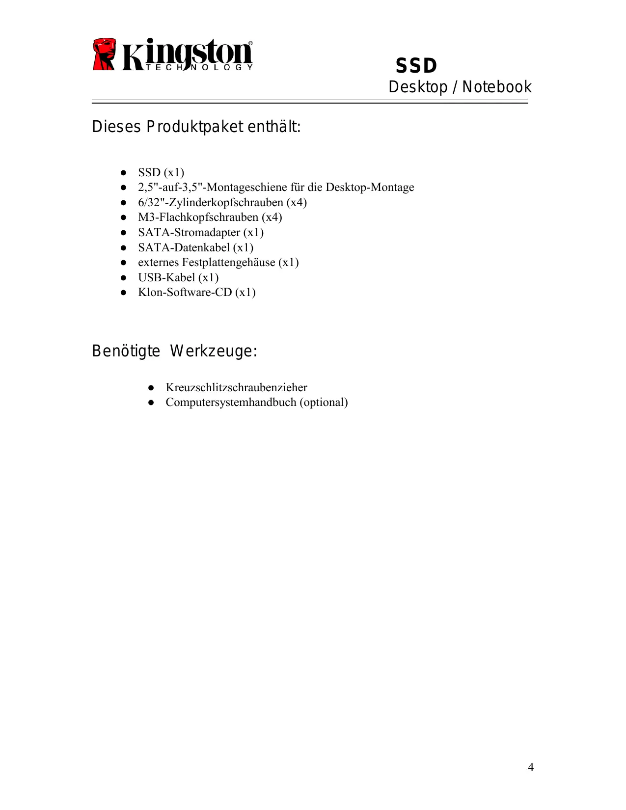 SH100S3B - SSD KINGSTON - Kostenlose Bedienungsanleitung