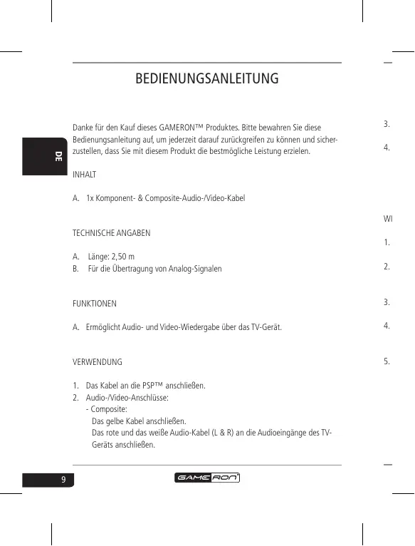 BEDIENUNGSANLEITUNG LUXURY TV CABLE PSP GAMERON