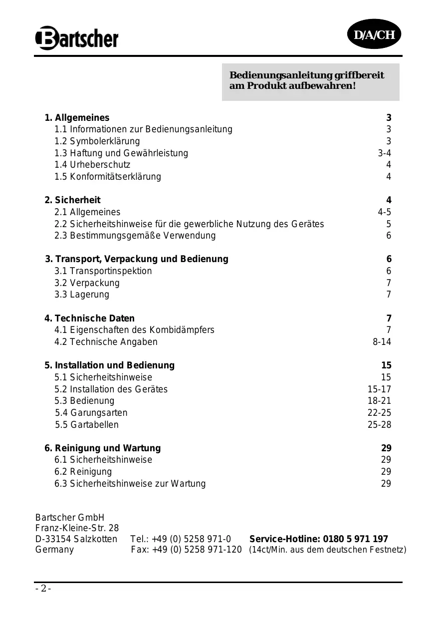 Finden Sie kostenlos die Bedienungsanleitung des Geräts 116402 BARTSCHER als PDF.