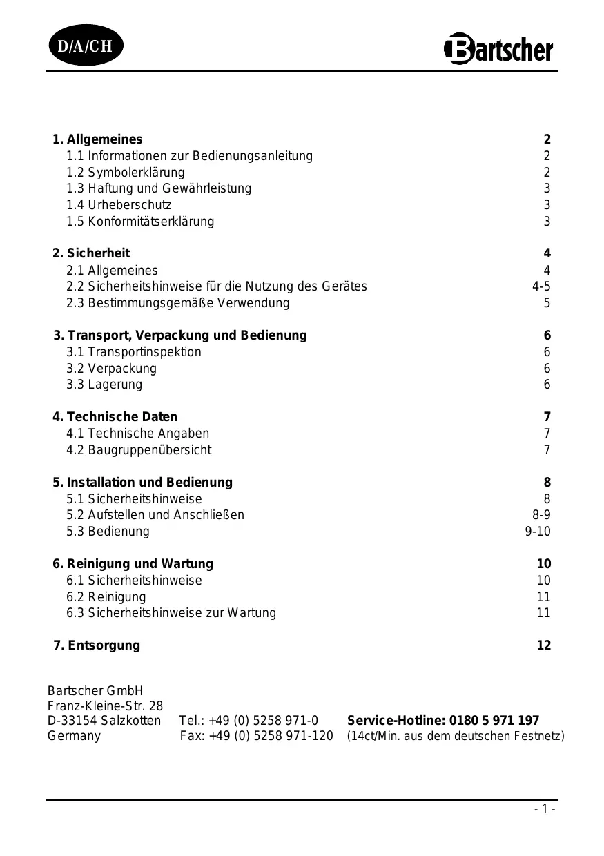 Finden Sie kostenlos die Bedienungsanleitung des Geräts 135.105 BARTSCHER als PDF.