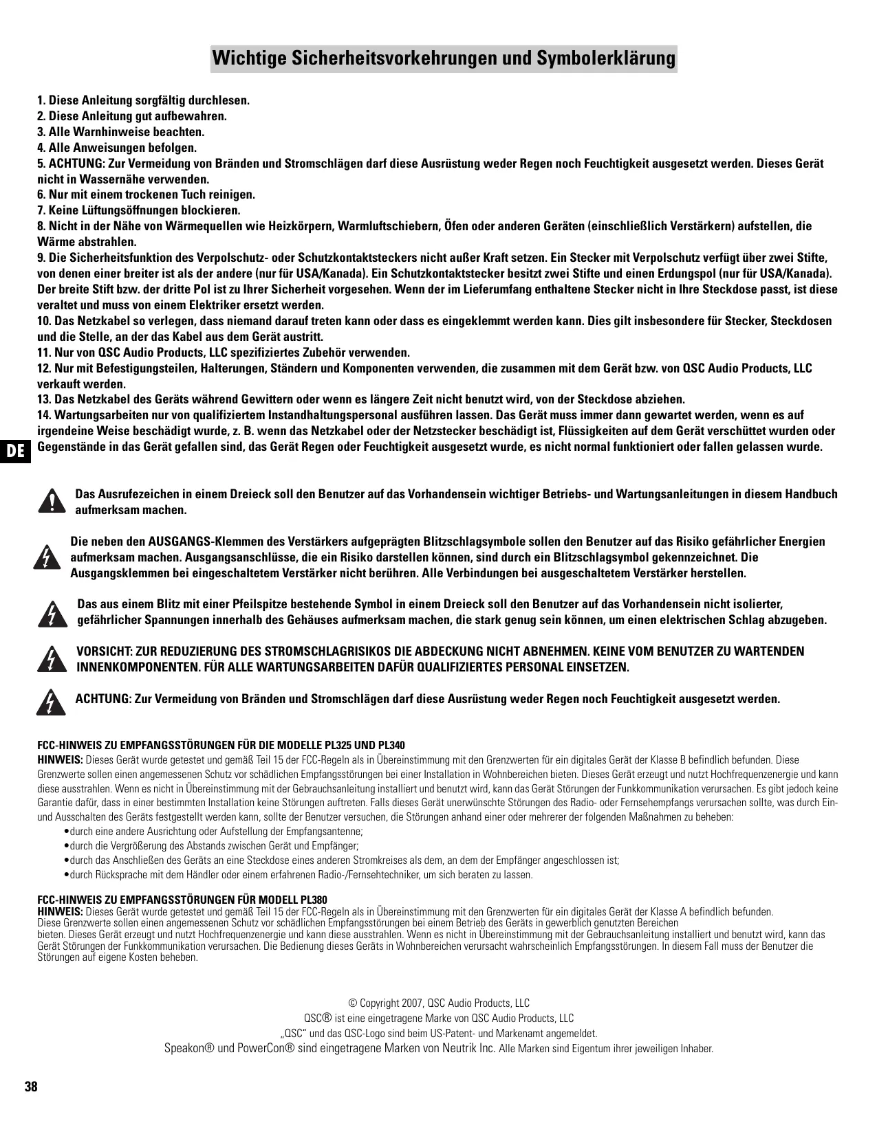 BEDIENUNGSANLEITUNG PL340 QSC AUDIO
