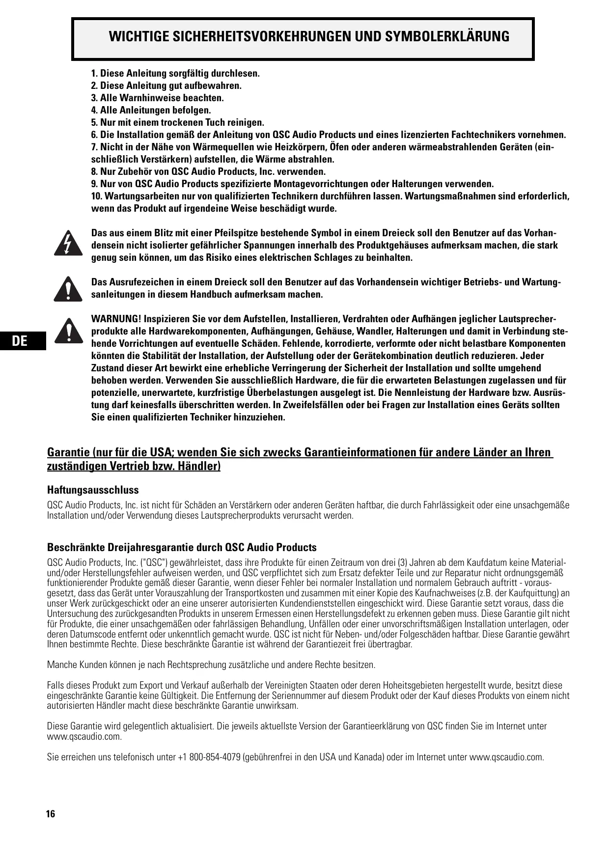 QSC Audio Products - Garantie limitée de 3 ans
