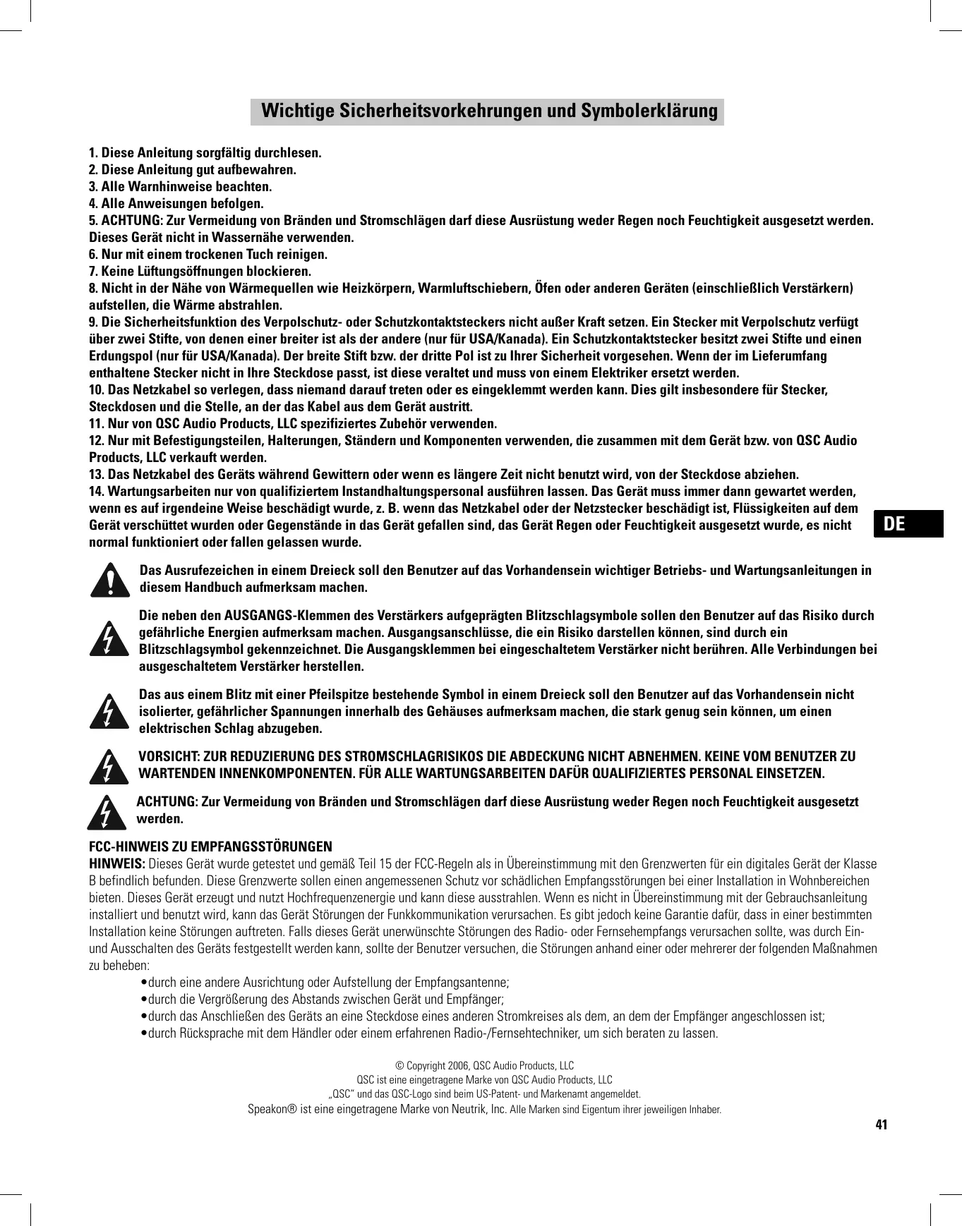 © Copyright 2006, QSC Audio Products, LCC QSC® est une marque déposée de QSC Audio Products, LLC QSC et le logo QSC sont des marques déposées auprès de l’U.S. Patent and Trademark Office.