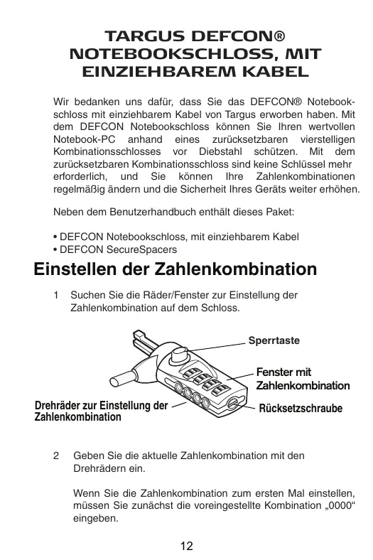 BEDIENUNGSANLEITUNG NOTEBOOK SECURITY DEFCON TARGUS