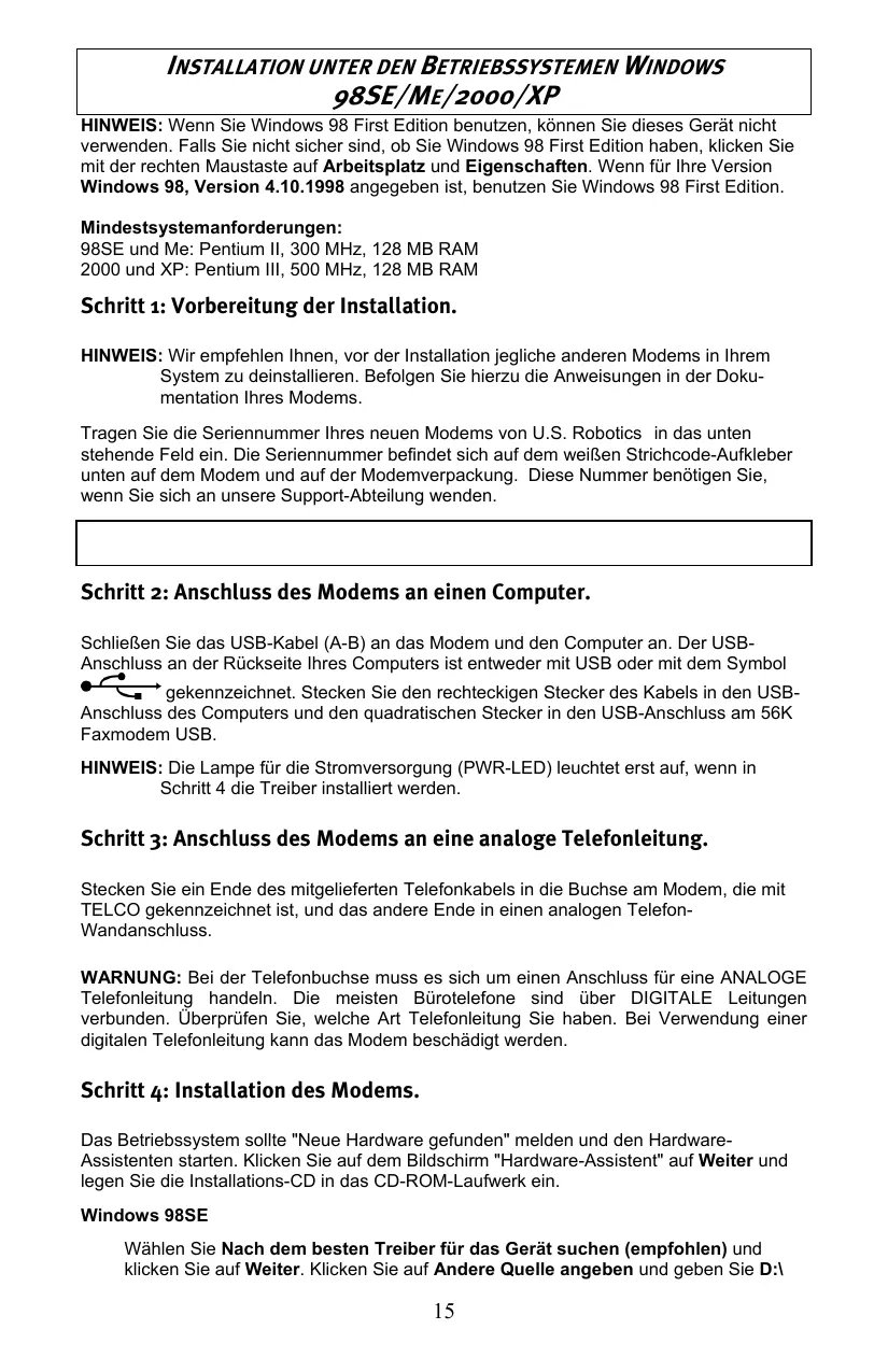 BEDIENUNGSANLEITUNG 56K FAXMODEM USB US ROBOTICS