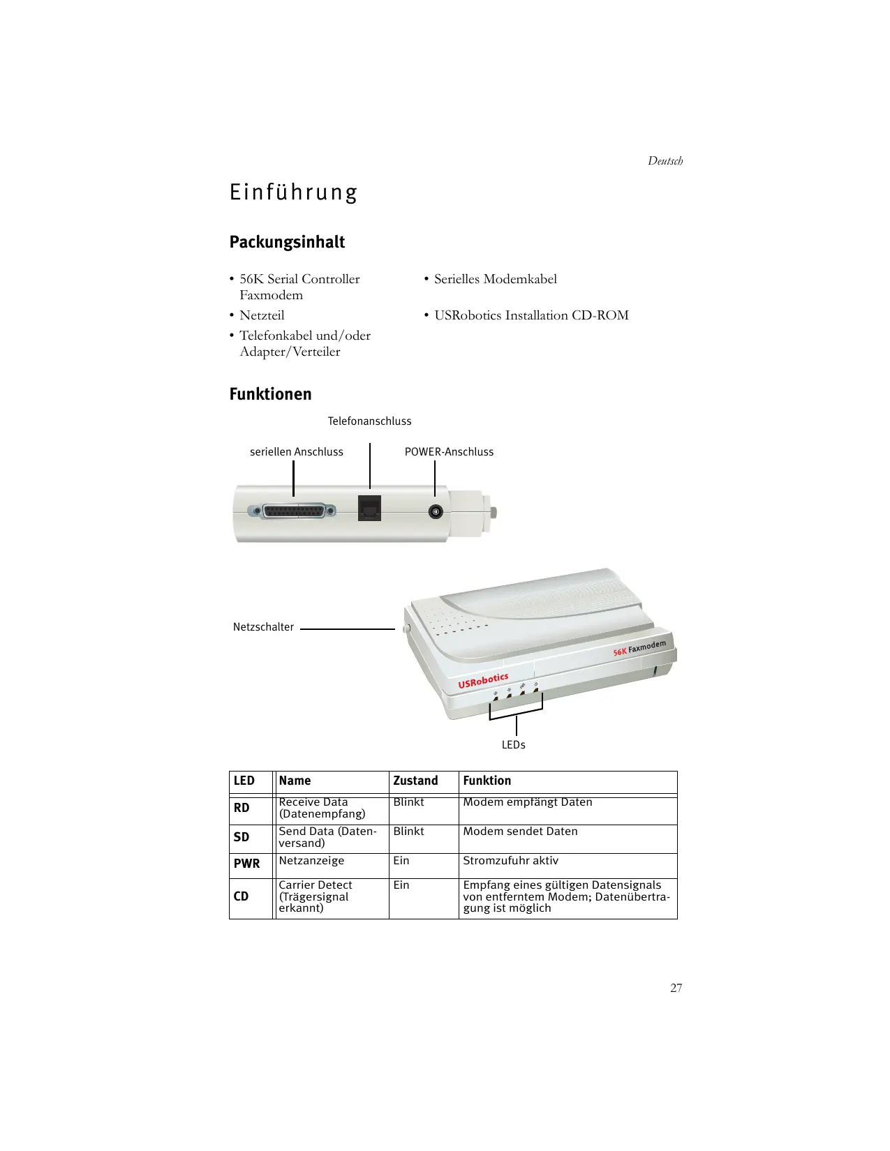 BEDIENUNGSANLEITUNG 56K SERIAL CONTROLLER FAXMODEM US ROBOTICS