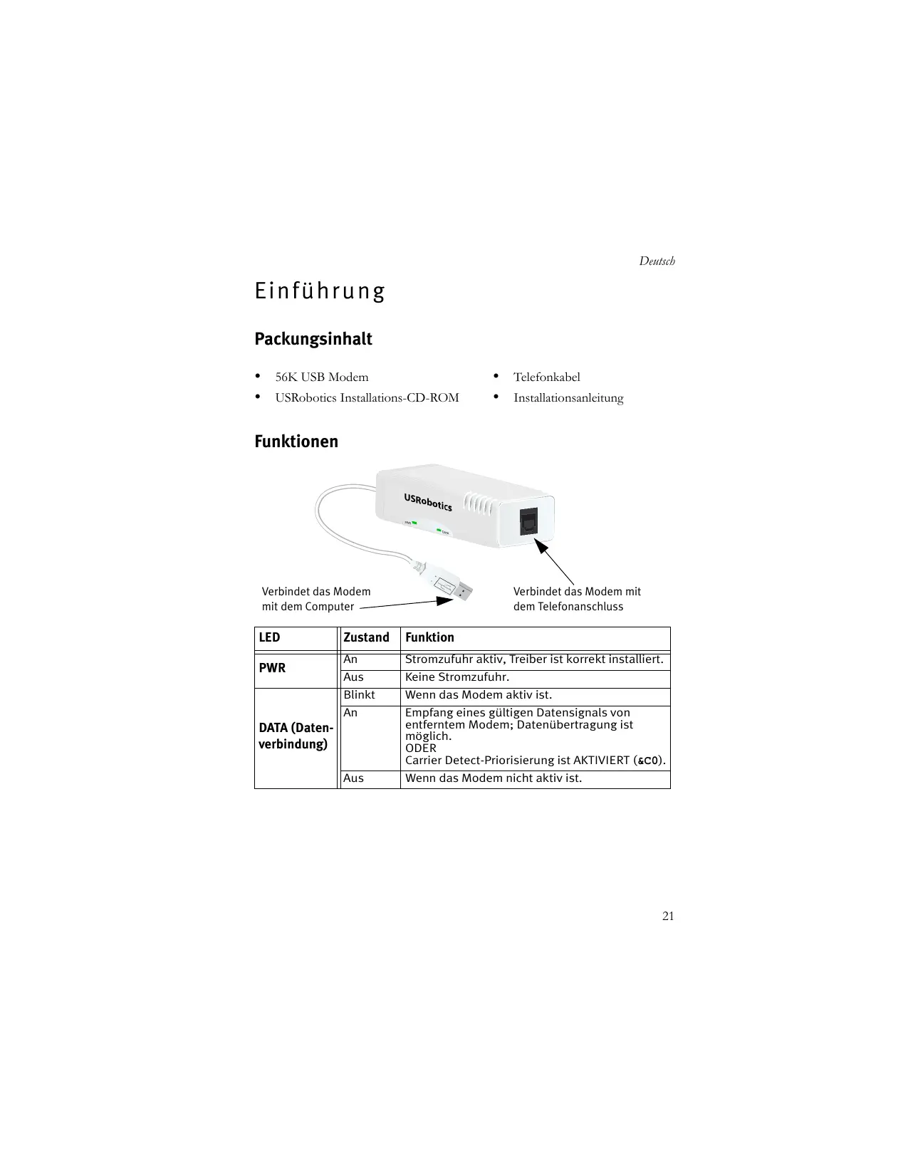 BEDIENUNGSANLEITUNG 56K USB MODEM US ROBOTICS