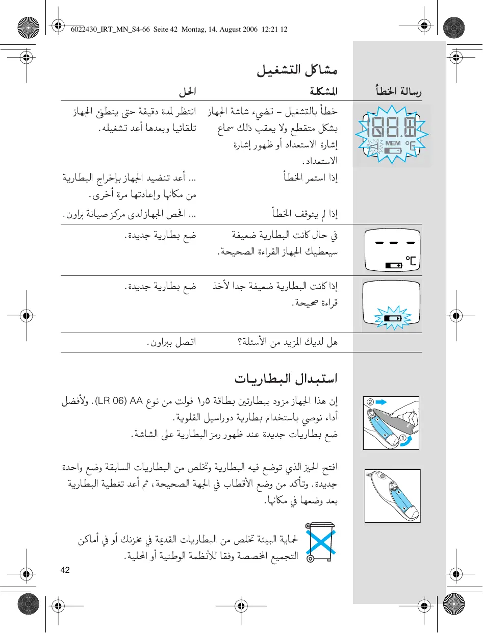 & IRT 4020/4050 - Arabisch - Seite 12 - 2 Jahre Garantie — 2.8.2006 (7 6022430_IRT_MN_S4-66 Seite 40 Montag, 14. August 2006 12:21 12