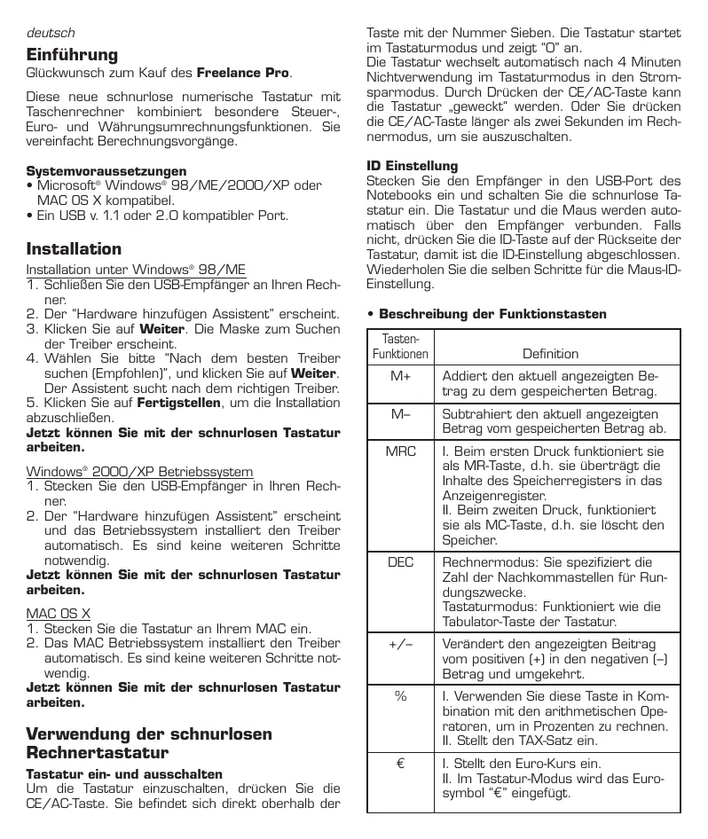 Kabellose optische Maus und numerische Tastatur mit Taschenrechner-Kombi Systemvoraussetzungen