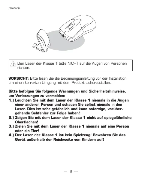 3.) Zielen Sie mit dem Laser der Klasse 1 niemals auf eine Person oder ein Tier!