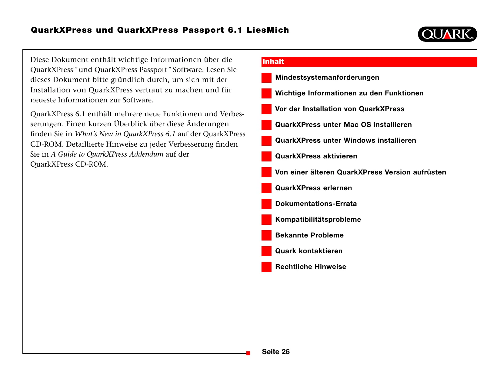 QuarkXPress und QuarkXPress Passport 6.1 LiesMich