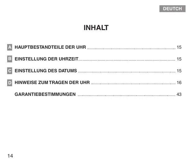 HINWEISE ZUM TRAGEN DER UHR 16