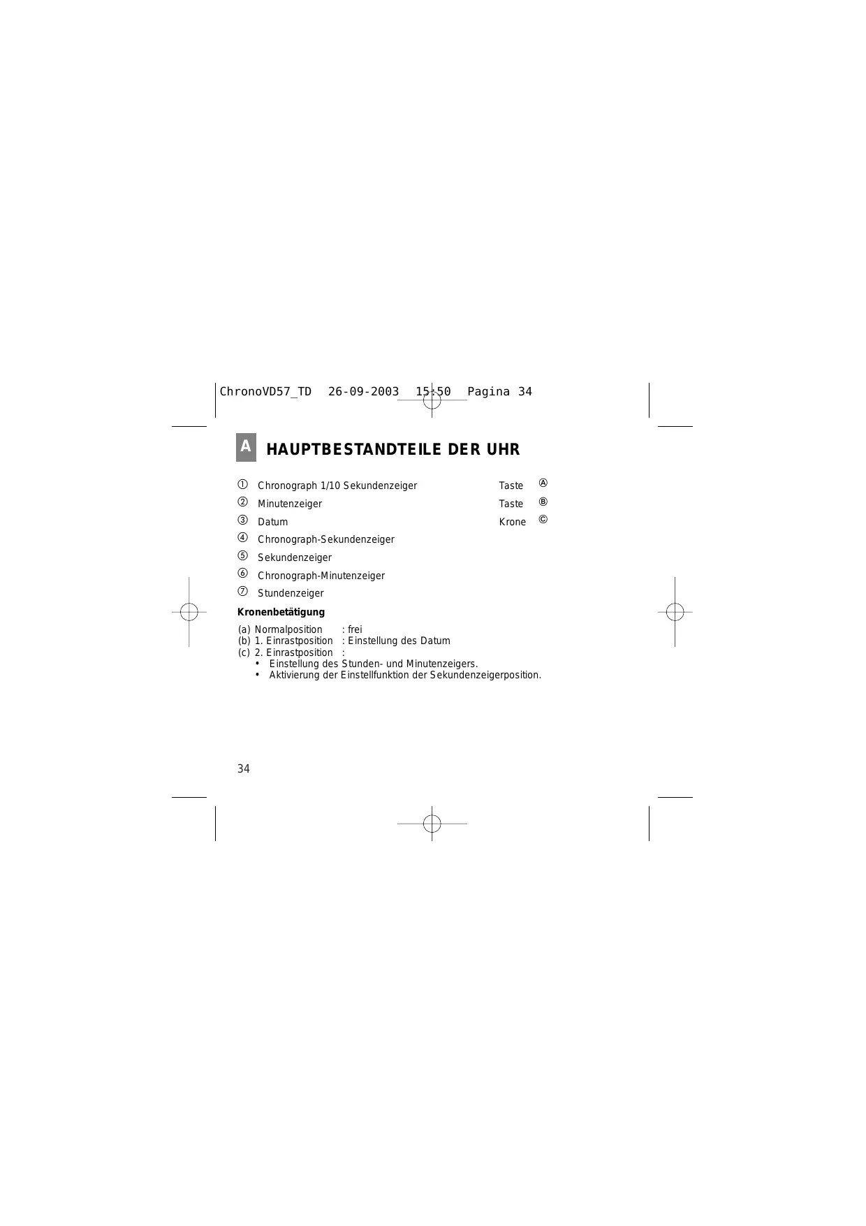 Hinweis: Wahrend der Chronograph lauf, nicht die Krone zum Einstellen der Uhrzeit Herausziehen, weil sonst der Chronograph nicht einwandfrei Funktioniert.
