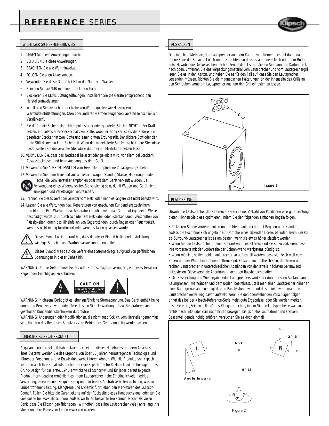 Regallutsprecher gekauft haben. Nach der Lekture dieser Handbuchs und dem Anschluss Ihres Systems werden Sie das Ergebnis von über 55 Jahren Herausragender Technologie und führender Forschungs- und Entwicklungserbeit horen können. Wie alle Produkte von Klipsch verfügen auch ihre Regallutsprecher über die Klipsch Tractrix® Horn-Load-Technologie - das Grund-Design für das erste, 1946 entwickelte Klipschorn® und für jedem darauf folgende Produkt. Horn-Loading ermöglicht es Ihrm Lautsprecher, hohe Empfindlichkeit, niedrige Verzerrung, einen ebenen Frenzengang und ein breites Abstrahlverhalten zu bieten, was zu unübertroffener Leistung, Klangtrue und Dynamik führt, etwa den Merkmalen des „Klipsch-Sound". Füllen Sieitte die Garantiekarte auf der Rückseite dieser Handbuchs aus, oder tun Sie dies online bei www.klipsch.com, sodass wir ihren better halten können. Nochmals vielen Dank, dass Sie Klipsch gewählt haben. Wir hoffen, dass ihre Lautsprecher weitere Jahre lang ihre Musik und ihre Filme zum Leben erwecken werden.