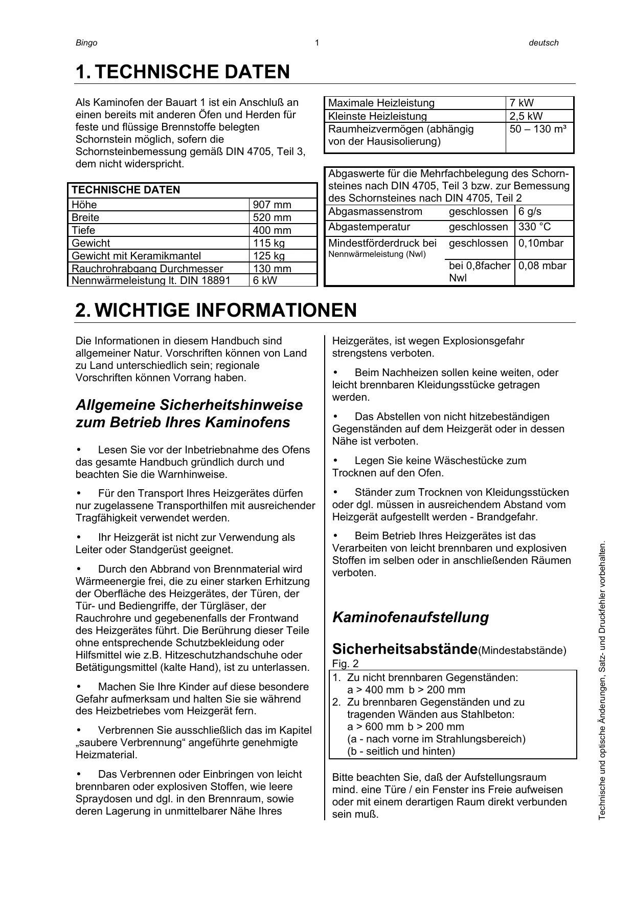 Finden Sie kostenlos die Bedienungsanleitung des Geräts BINGO AUSTRO FLAMM als PDF.