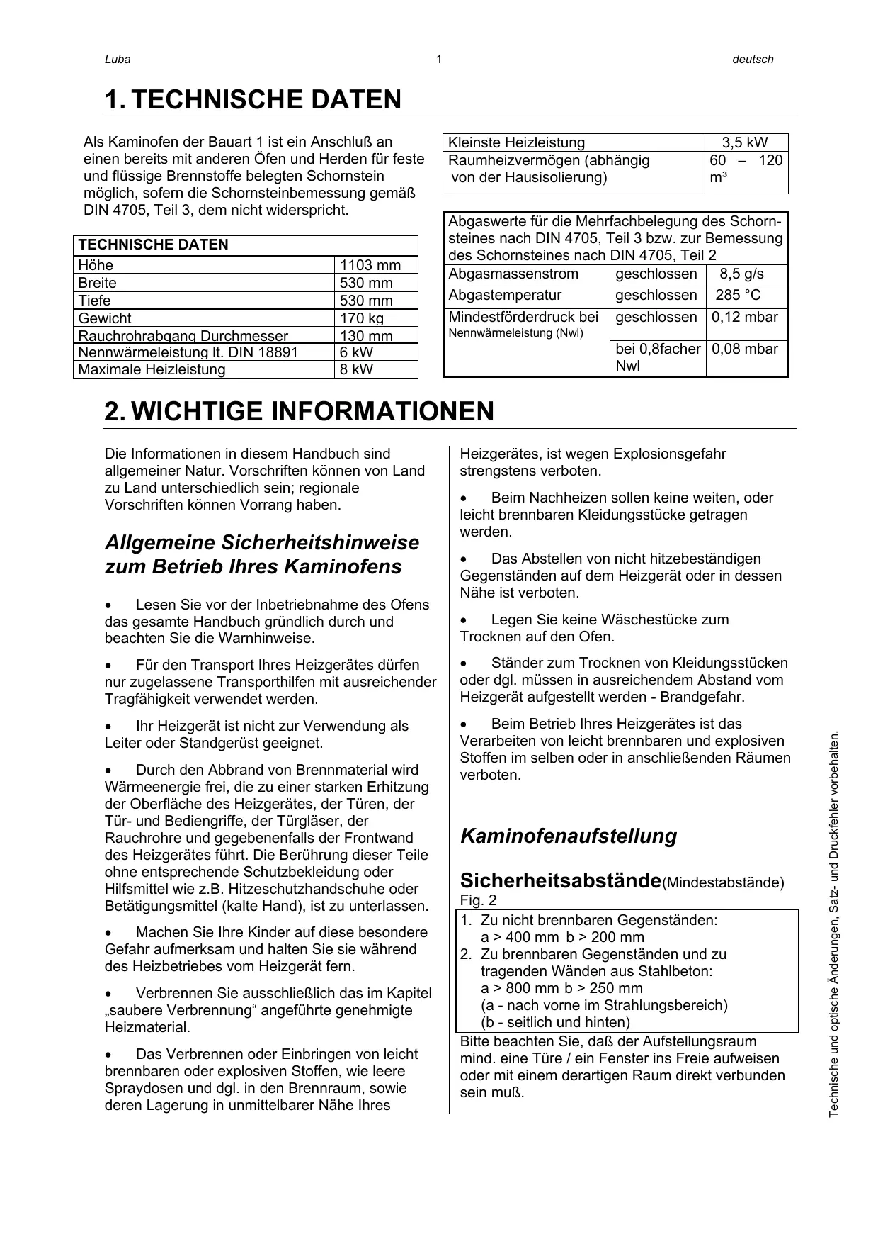 BEDIENUNGSANLEITUNG LUBA AUSTRO FLAMM