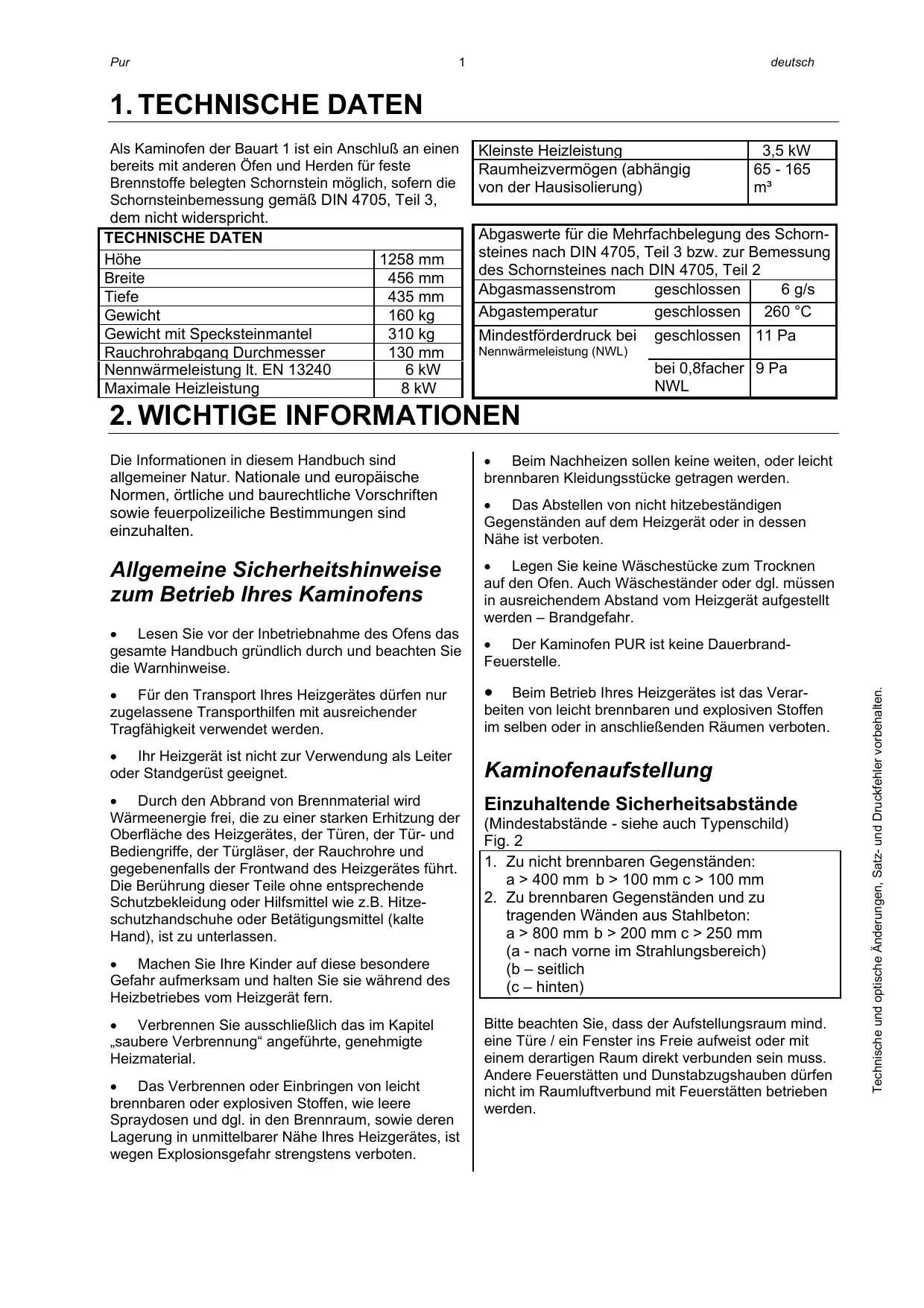 - Der Kaminofen PUR ist keine Dauerbrand-Feuerstelle.
